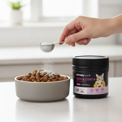 Formulated with essential nutrients like DHA and MCT— this skin and coat supplement for dogs and cats helps maintain healthy skin by supporting natural moisture balance and improving skin barrier function.